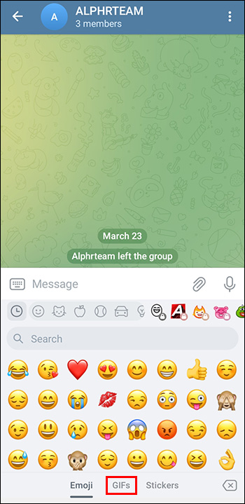 Sometimes, you may want to send a GIF you’ve used before or one that you’ve received from a friend. Telegram provides a simple way to access and send existing GIFs in the app:
