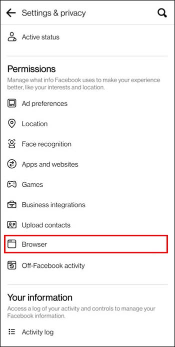 - Find “Permissions” and click on “Browser.”