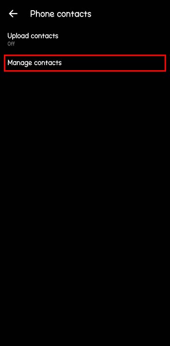 - Scroll to find phone contacts and select “Manage Contacts.”
