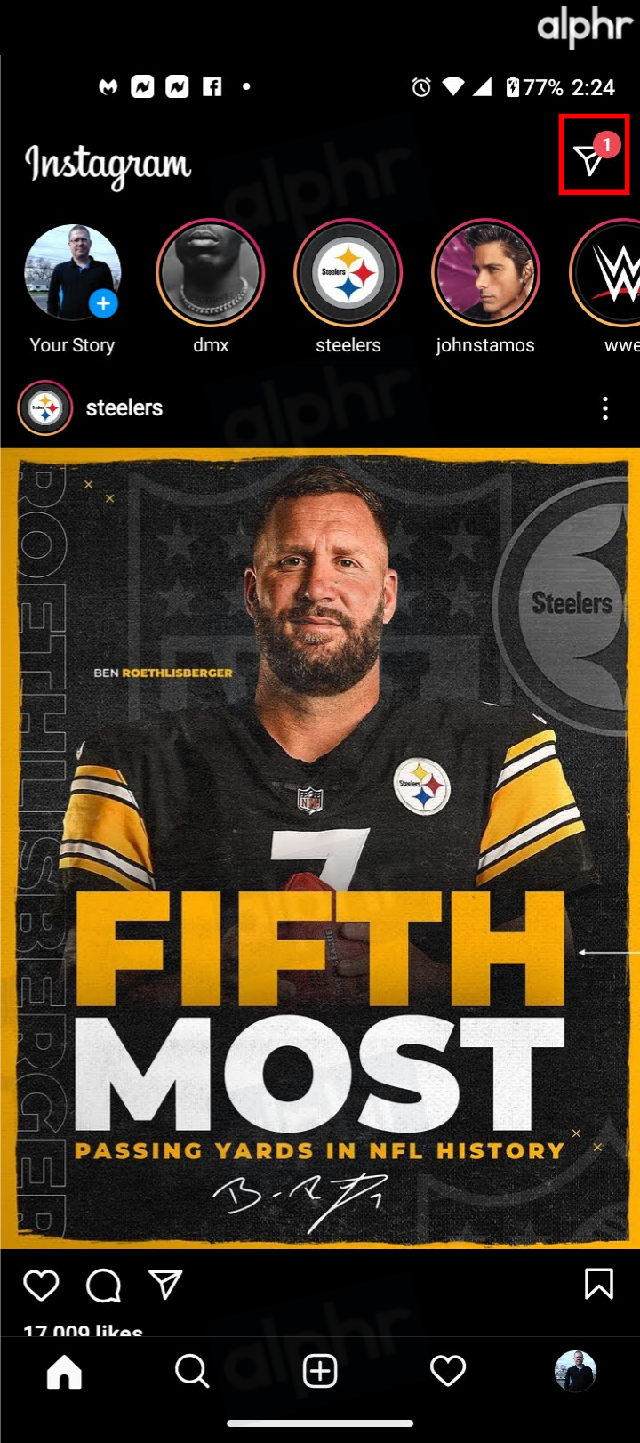 - On the Instagram Home page and tap the paper airplane icon (messages) in the top-right section.