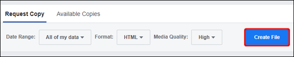 - Give Facebook time to prepare the file for download, then tap or click on the “Create File” button.