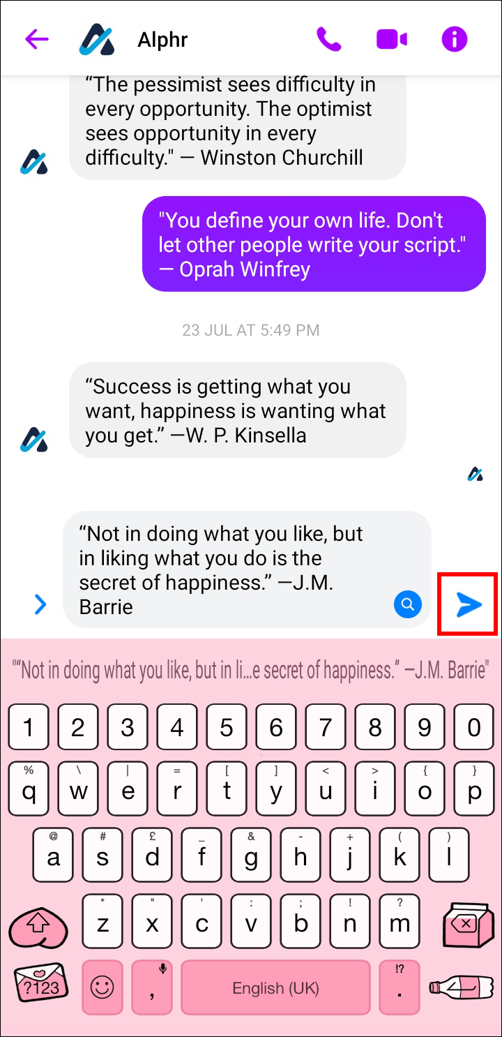 Now, take a look at the status indicator circle by your message. The empty circle will have a checkmark in the middle when your message is sent, and the checkmark’s background will be filled in once the message is delivered. This usually takes a couple of seconds.