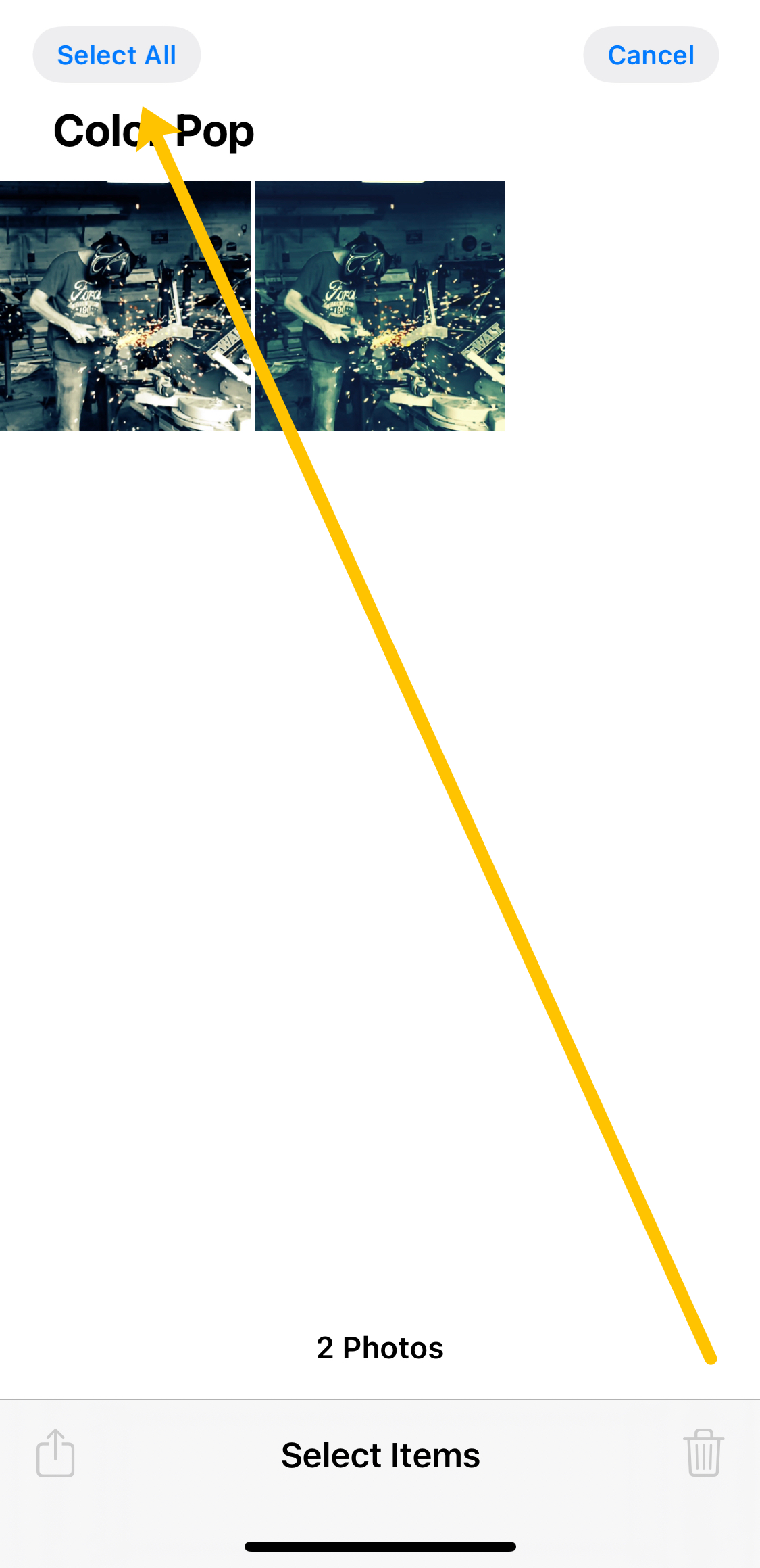 - Tap the “trash can icon” (delete) in the lower right-hand corner. Then, confirm that you’d like to delete all of the photos in the album.
