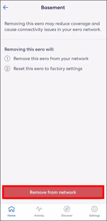 - Tap the “Remove” button with the name of the Eero you wish to delete.