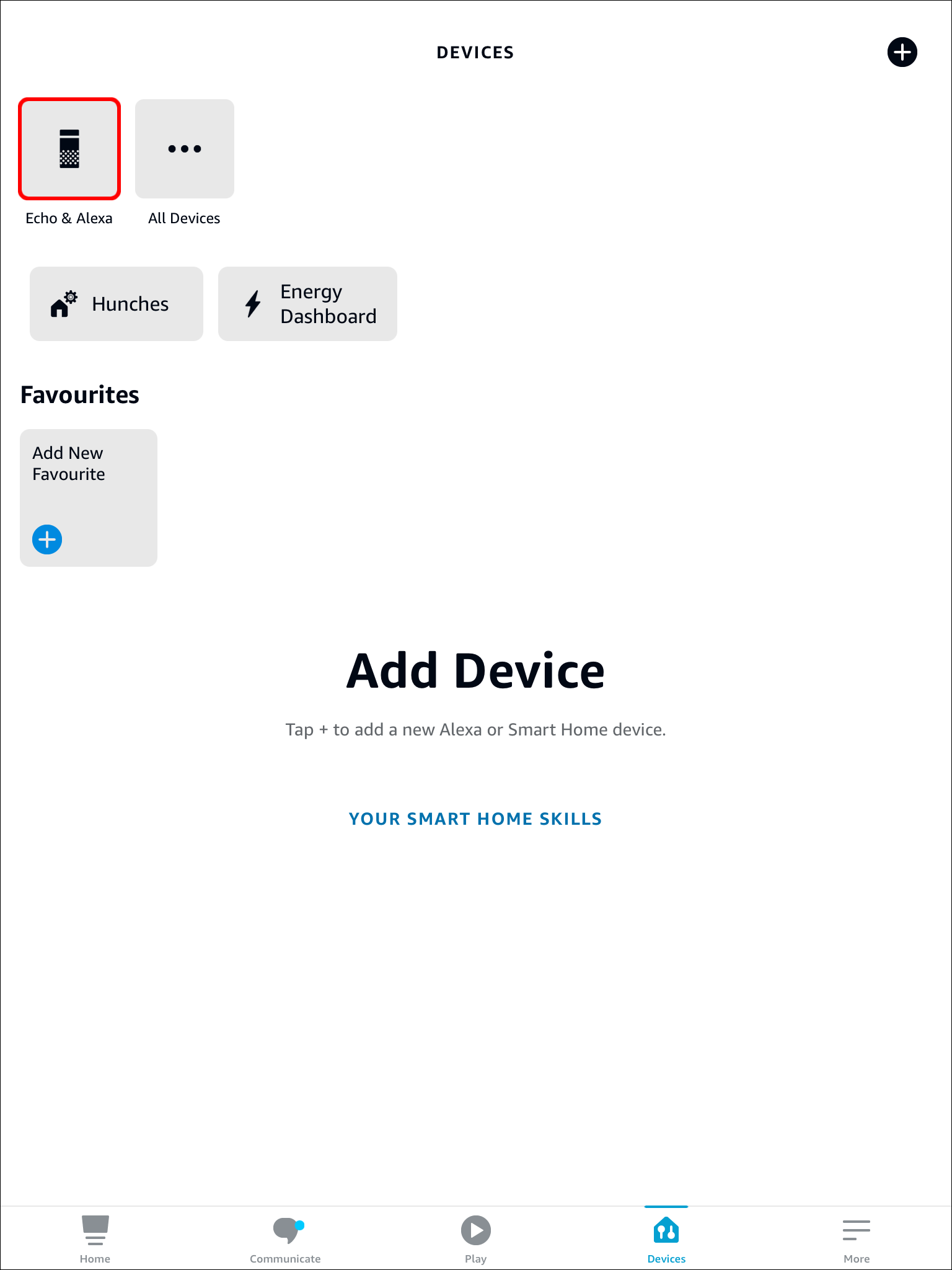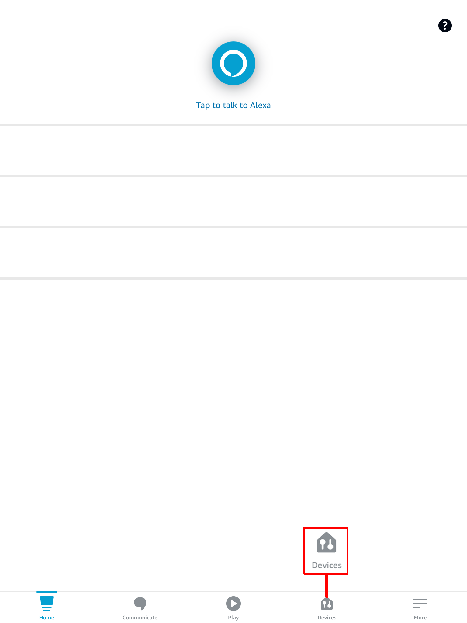 - Launch the Alexa mobile app on your iPad, then tap “Devices” at the bottom of the screen.