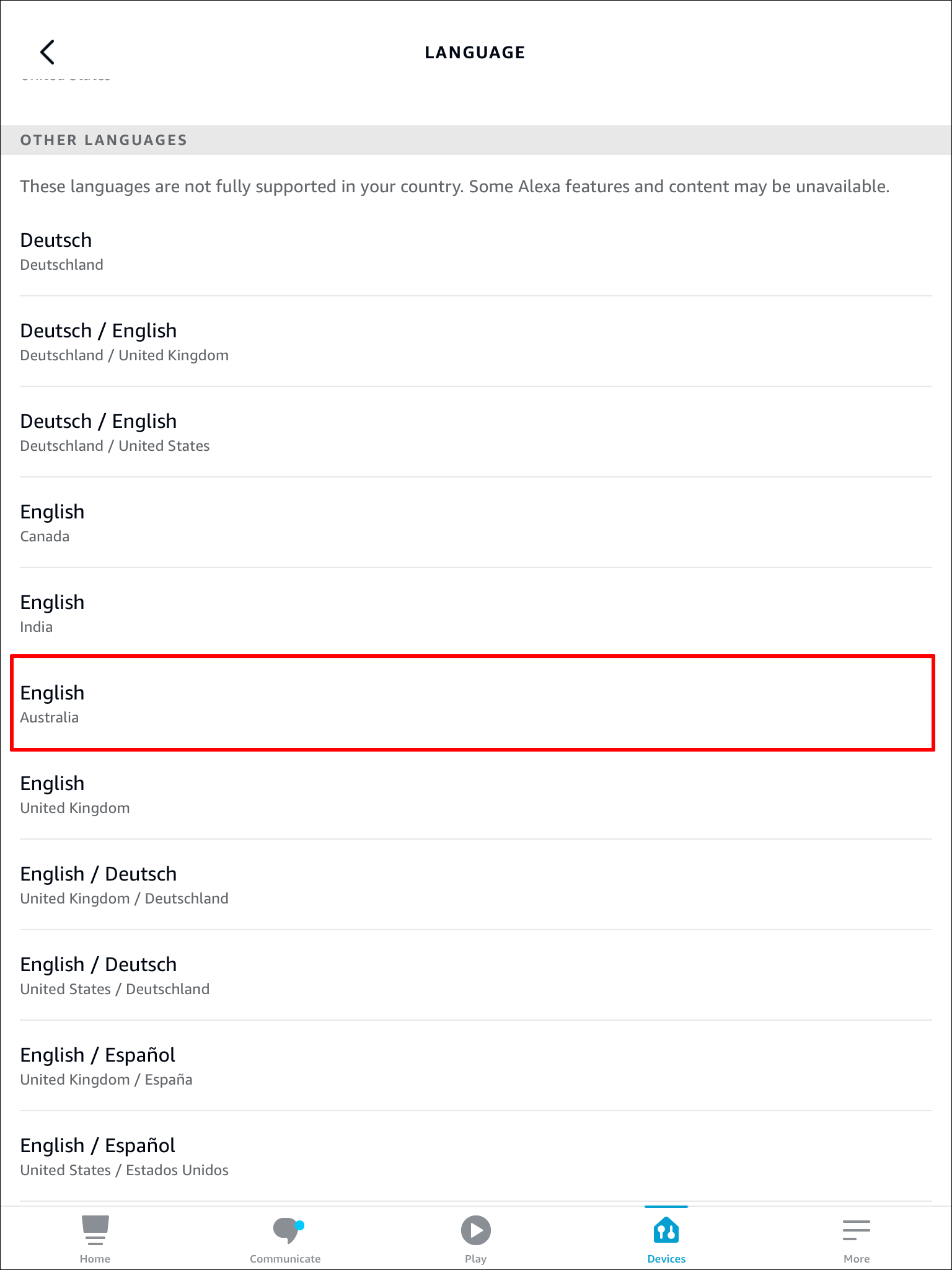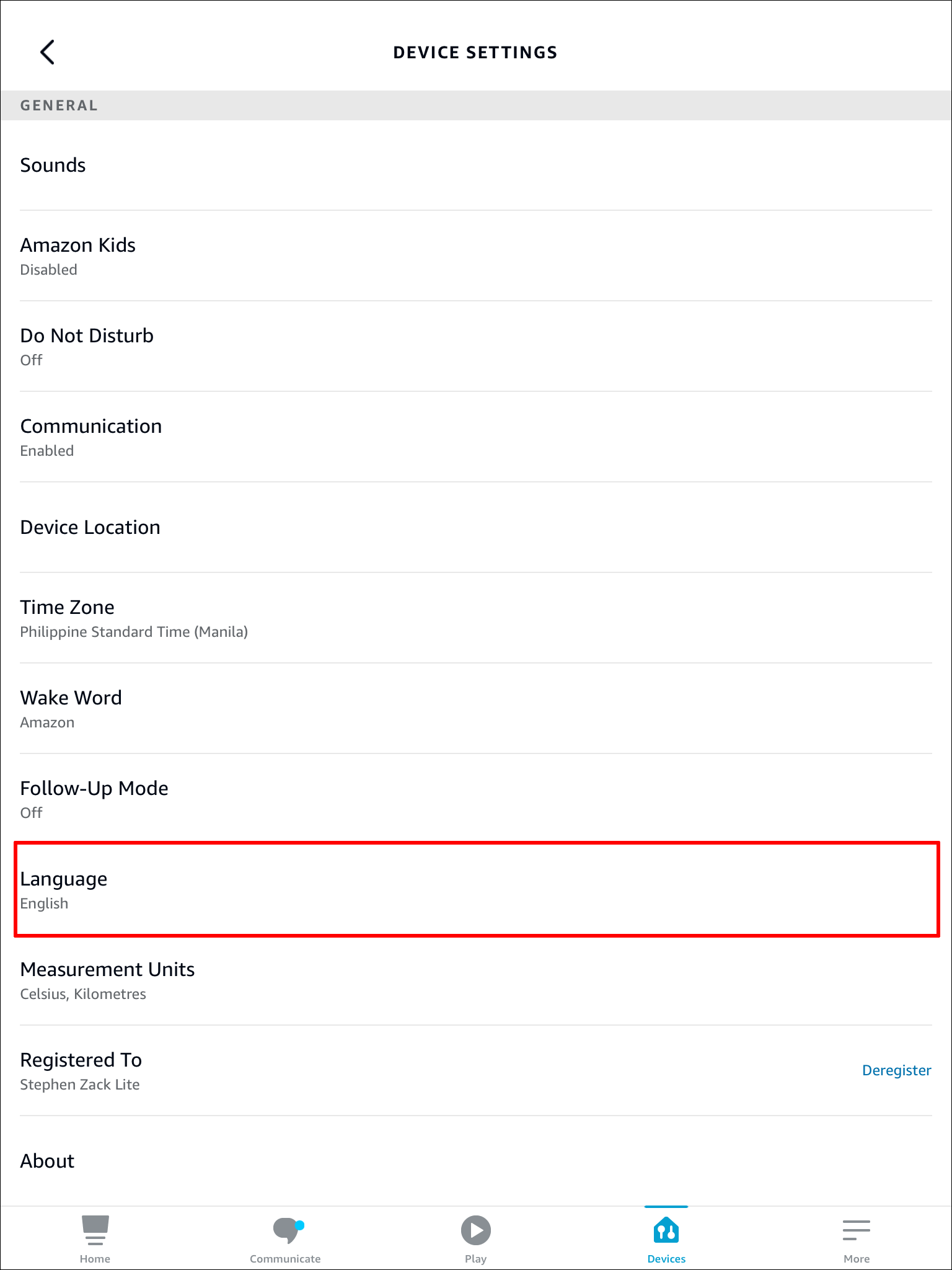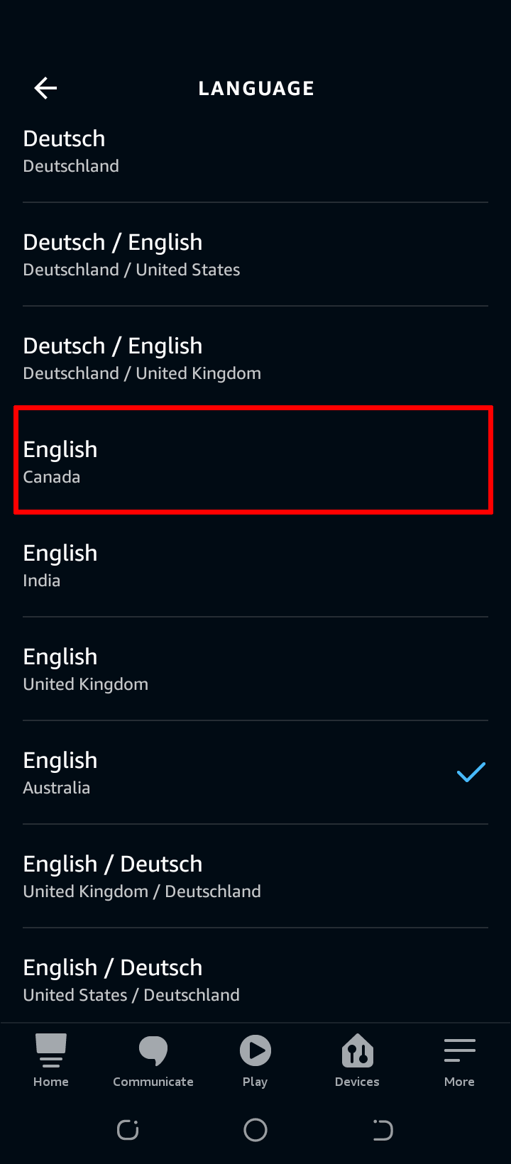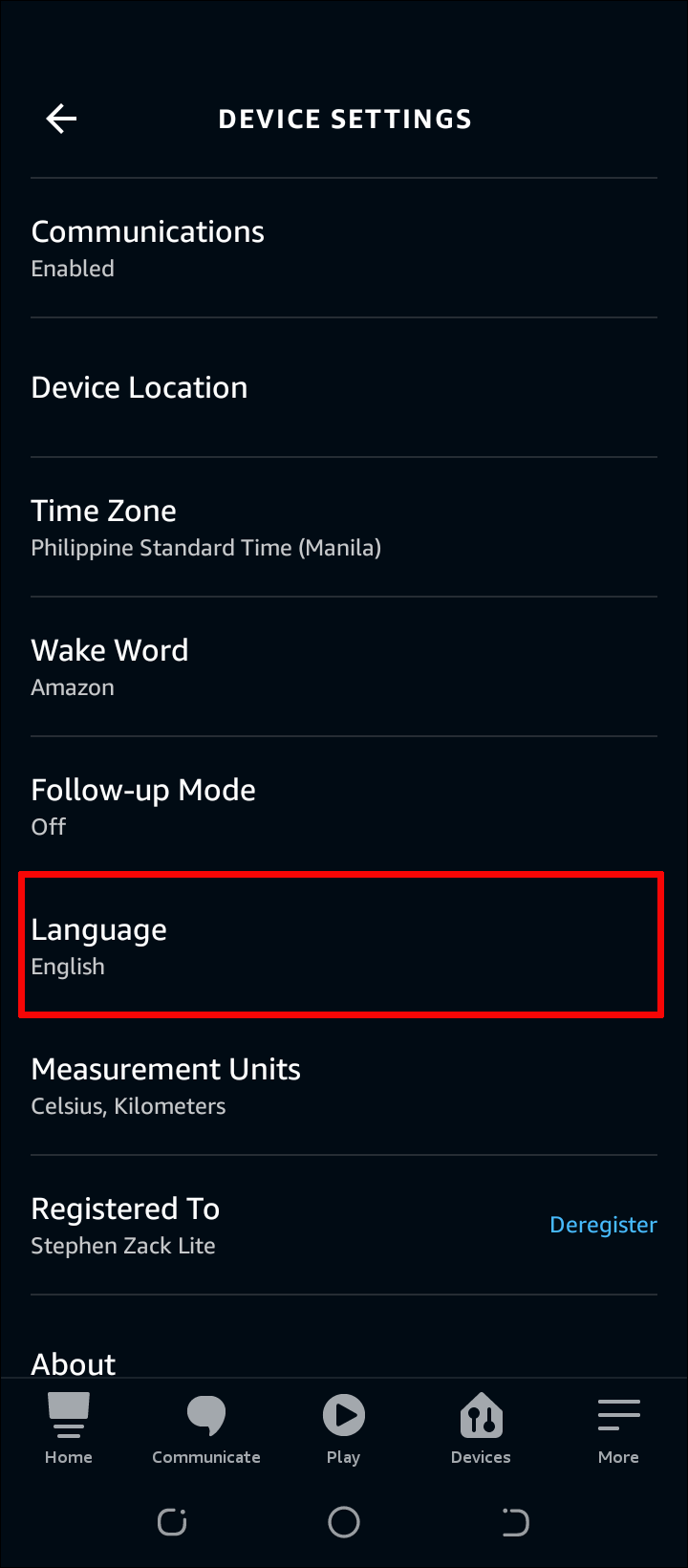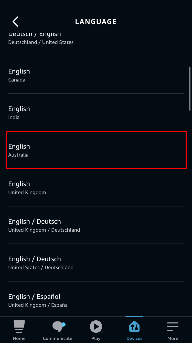 - Pick one of your Echo devices to change its accent.