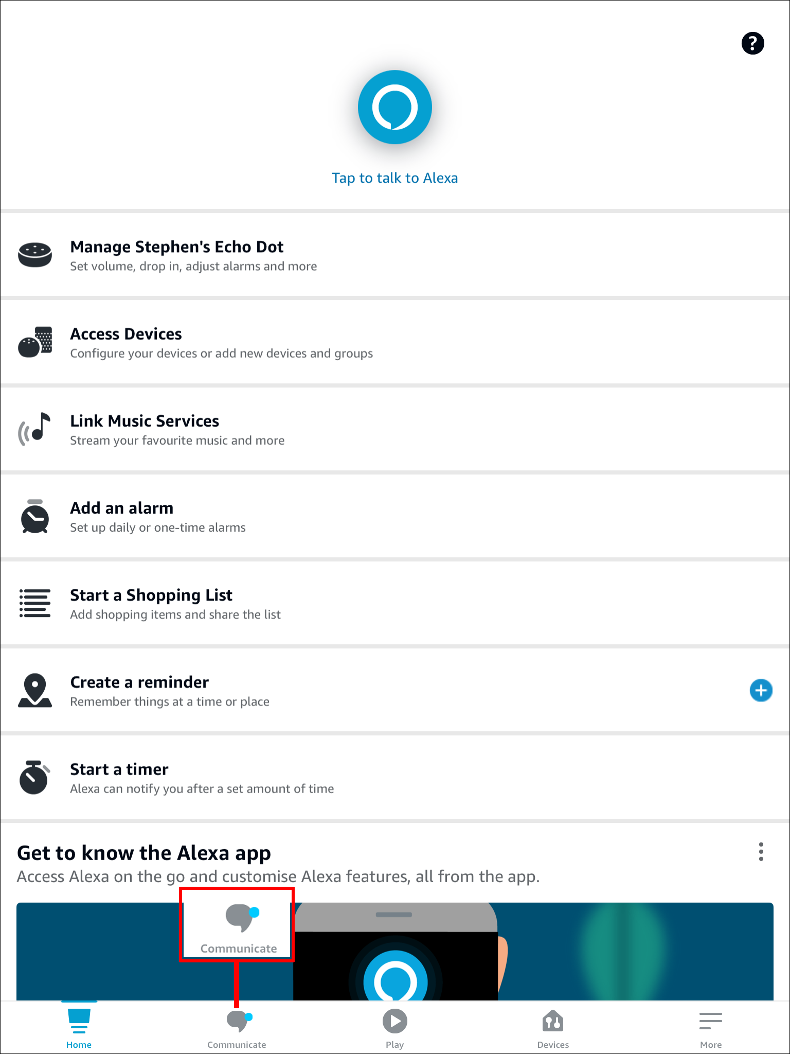 The Alexa app allows you to set up a nickname or use a name variation on your profile. To change your name on an iPhone: