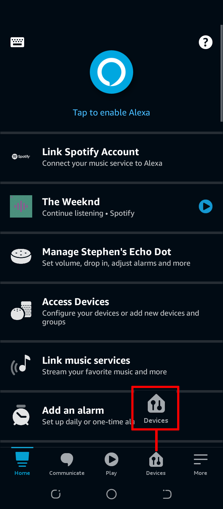 - Launch the Alexa app and tap “Alexa Devices.”