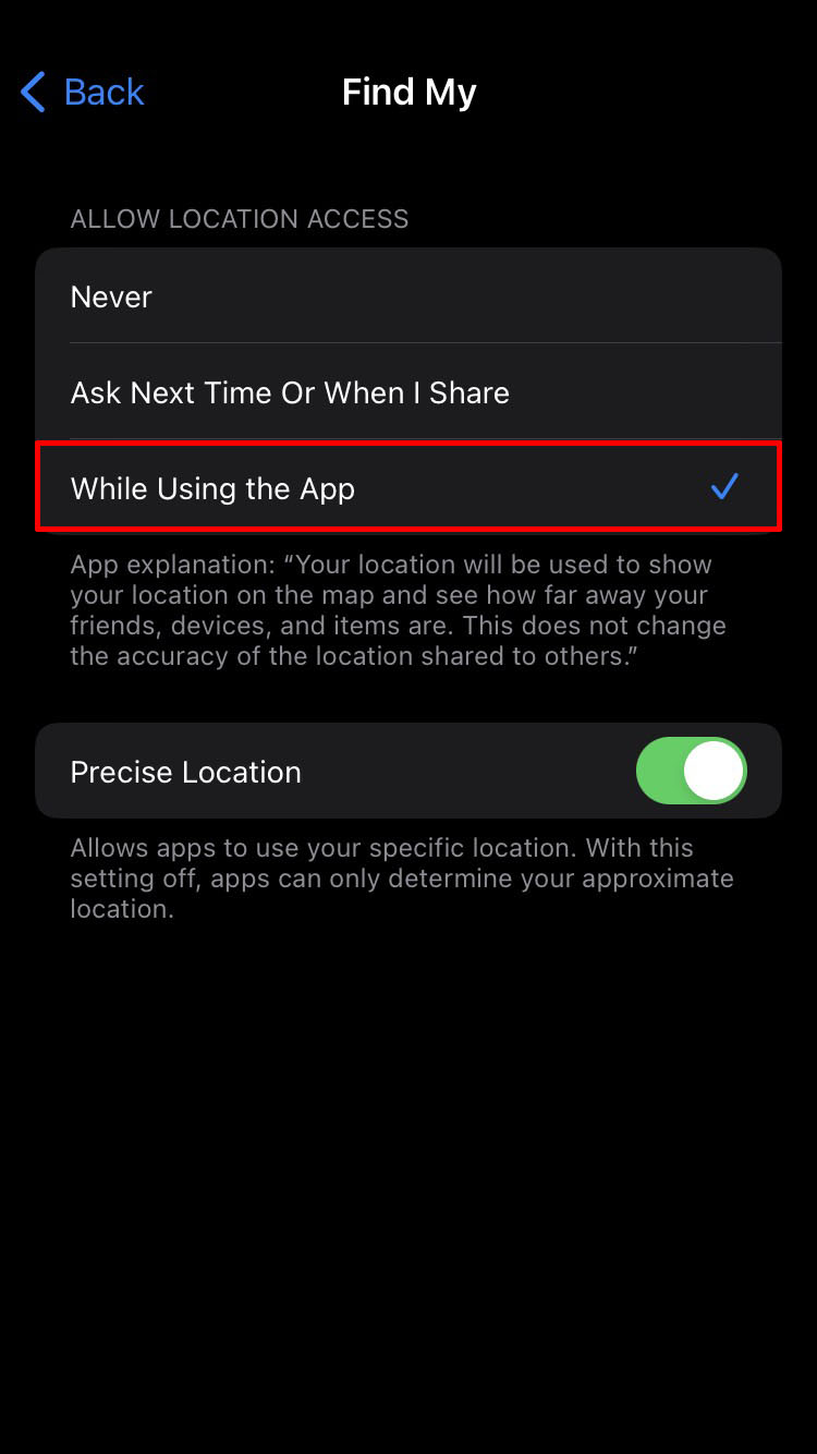 If you have other devices listed on your Find My app, you can check to find out if they are still visible. Use a different Apple device to access the app, and if our Airtags are still missing from the list, then the problem is with the tags. If your Airtags are now visible, the issue is with the device you previously used to locate your tags. You can readjust some settings to rectify the problem in this latter scenario. Here’s how to do that.