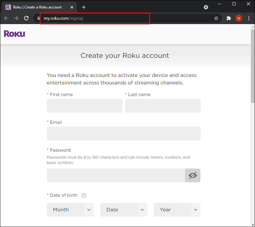 - Go to the Roku Sign up page to create your account by completing the instructions.