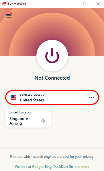 - By default, ExpressVPN always automatically sets a Smart Server Location that locks in the maximum browsing speed. If the chosen location is within the US, you’ll be able to circumvent Hulu’s geo-restrictions without any further action. But if you have a specific server location in mind, proceed to step 6.