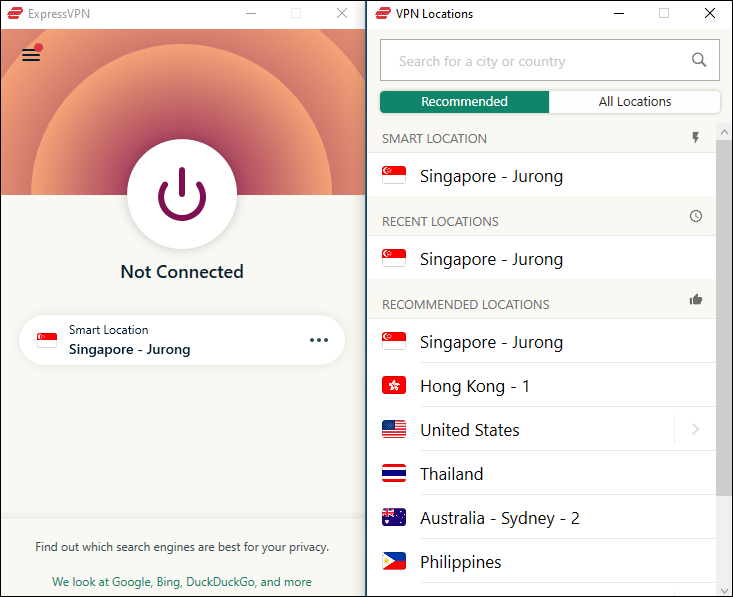 - Select your desired VPN server location from the “Recommended” list or the “All Locations” list.