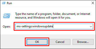 ms-settings:windowsupdate” into the box labeled “Open.” Click “Ok.”