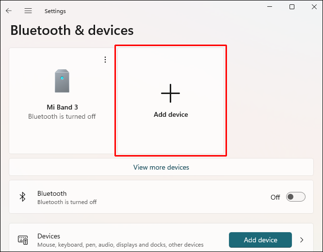 - Go back to “Bluetooth & devices.” Click “Add Device.”