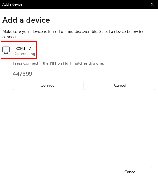 - Pick the Roku device when it appears. You may have to wait a minute.