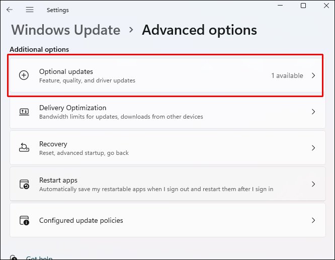 - Find the “Additional Options” section, and click “Optional Updates.”