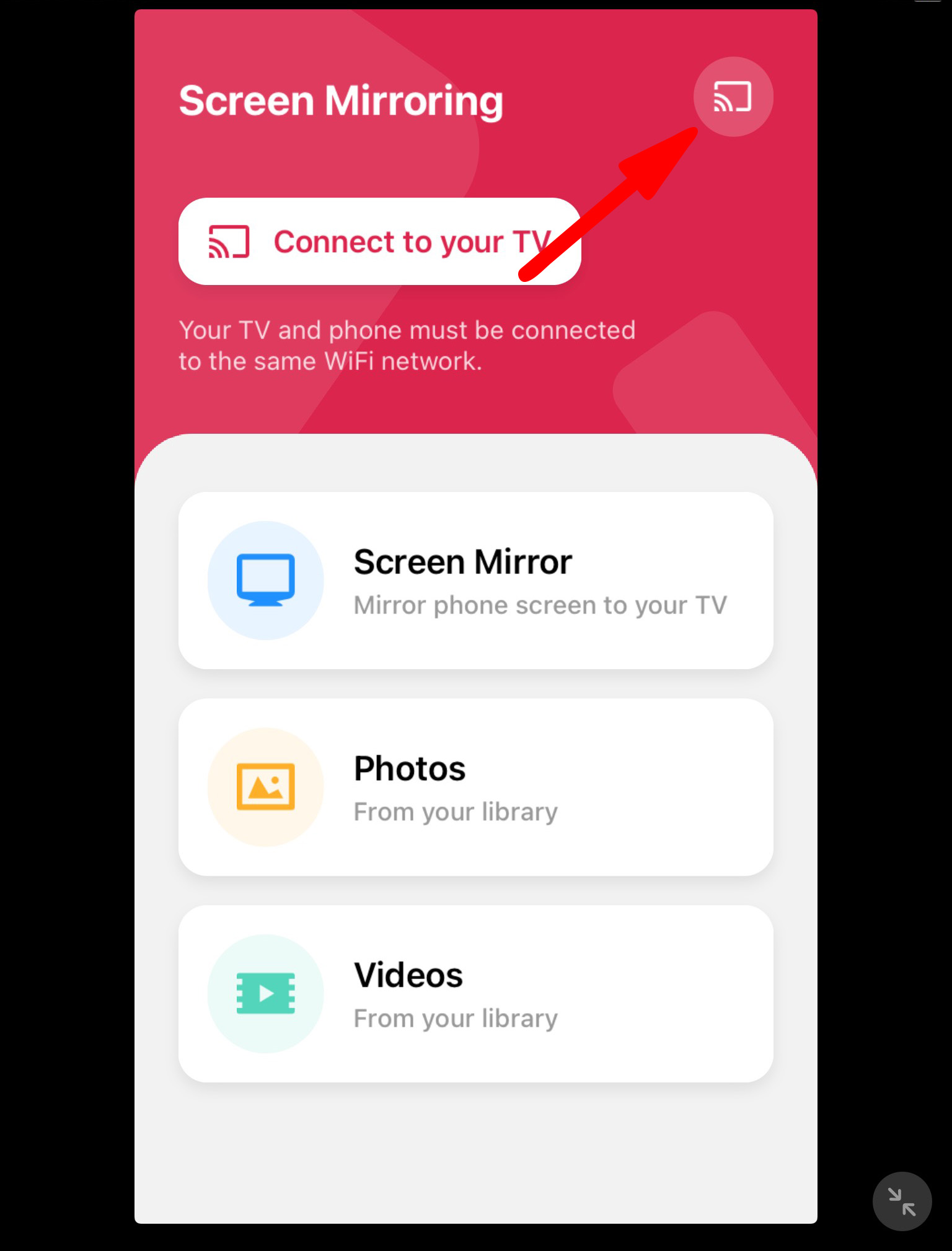 - Click the Screen Cast icon in the top right corner.