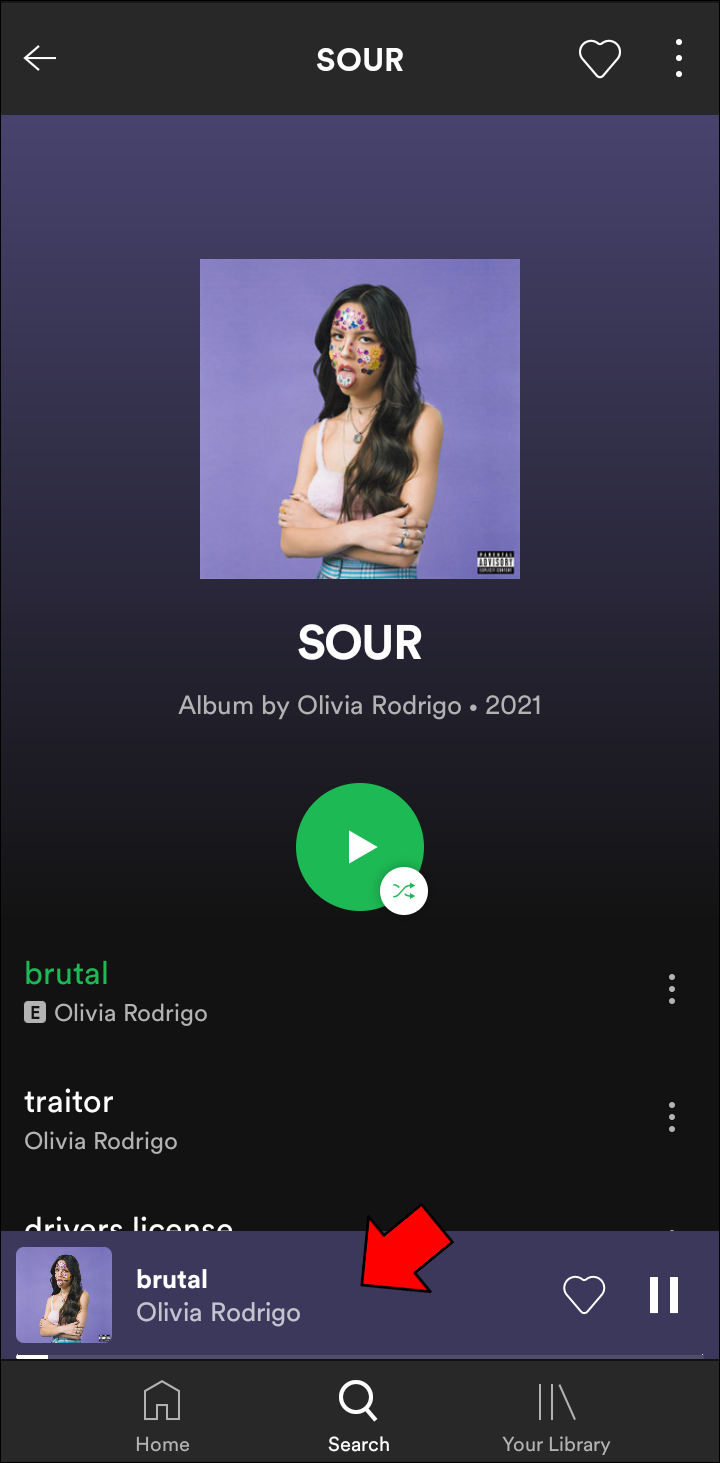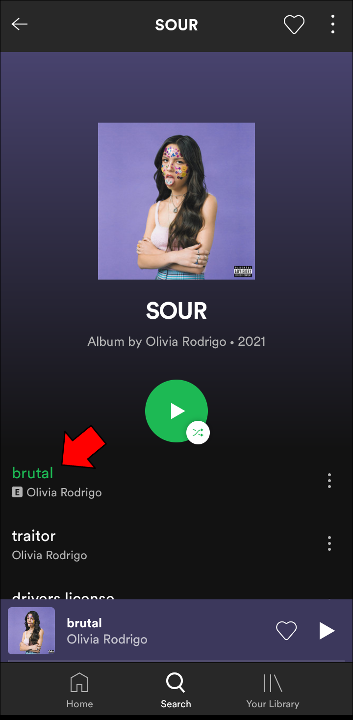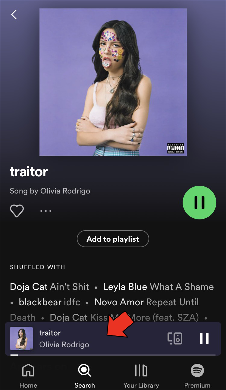 - Choose a song you want to listen to, either on your home page or in “Your Library.”