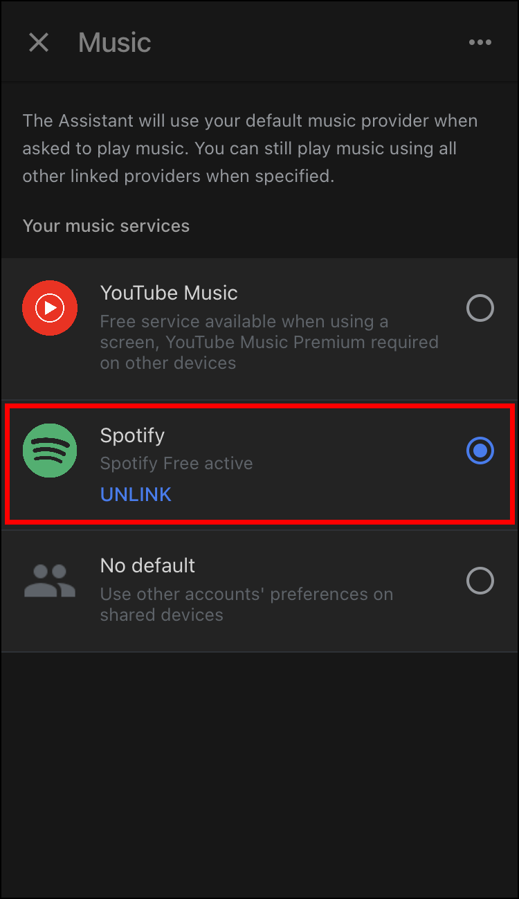 - Under “Services,” choose “Spotify” as the default playback service.