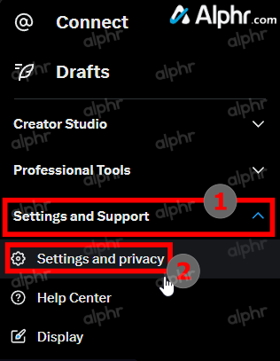 - Click the “Settings and Support” dropdown on the left, then select “Settings and privacy.”
