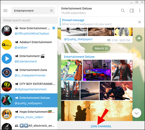 The quickest way to find and join a Telegram group is by joining a Telegram channel to get an invitation. Perhaps a friend told you about a Telegram channel where people provide group invitations. Assuming that you’re using the desktop version of the Telegram app, here’s what you do: