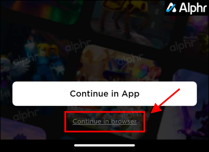 - Go to the official Roblox website and select “Continue in browser” at the bottom of the screen.