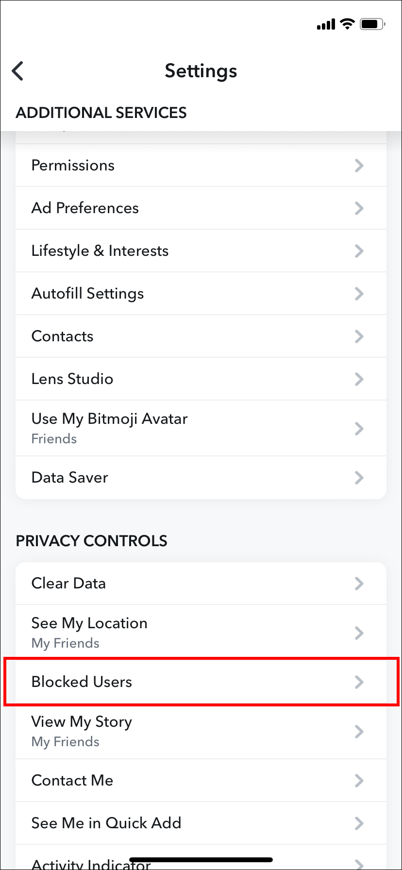 - Navigate down to “Blocked.”