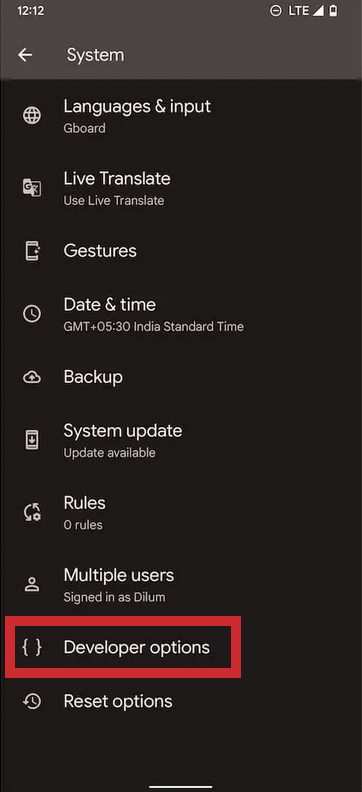 - Tap on the “Advanced” dropdown menu, then select “Developer options.”