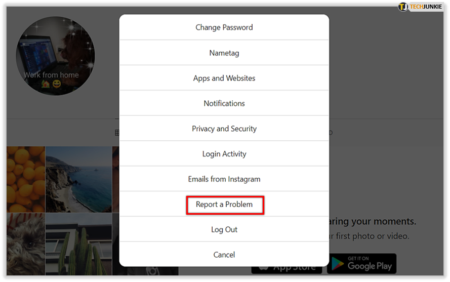 - Tap on “Report a Problem,” then tap on Report a Problem on the popup window.