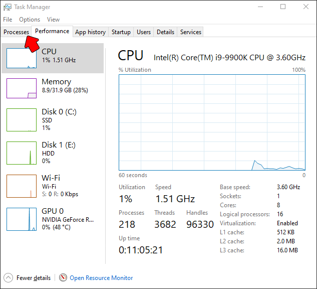 - Look for the Processes tab.
