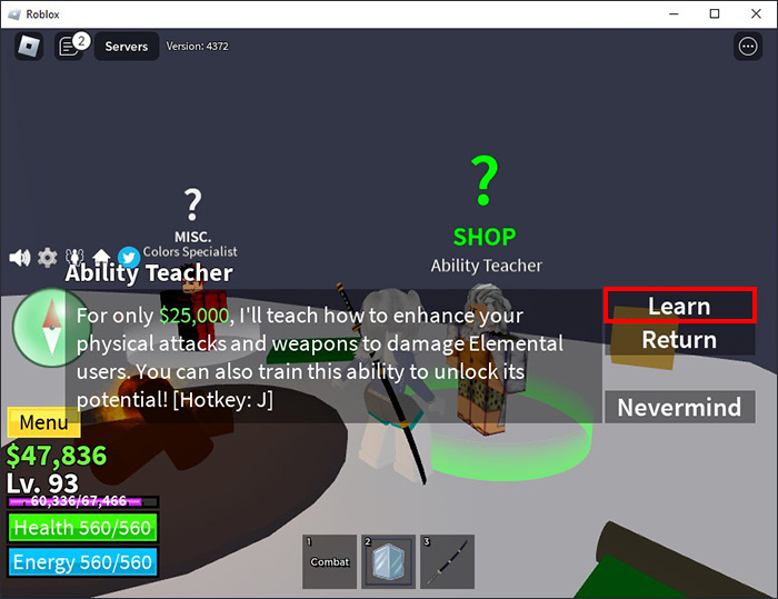 - Locate the Ability Teacher non-player character(NPC) and interact with him.