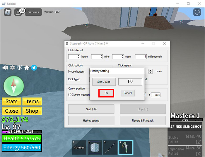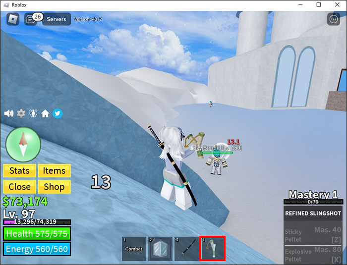 This ranged weapon offers players an improved firing rate compared to the game’s standard slingshot. It allows you to deal damage to your enemies at long distances. The steps below will help you to run an AFK grind with the Refined Slingshot and max your Haki in Blox Fruits.