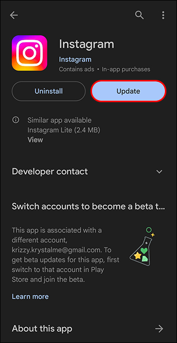 If there are no issues with the server, but you’ve noticed that most users are complaining of bad-quality Instagram stories, it may be best to check for the latest updates. Outdated app versions might interfere with your uploads. Instagram typically releases an update to fix any issues they encounter with user experience. Here’s how you can update your app: