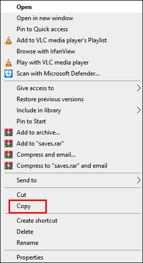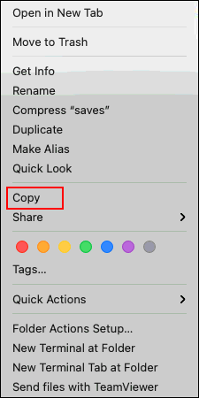 - Right-click the saves folder and select Copy from the dropdown menu, then save the folder somewhere safe, like a desktop.