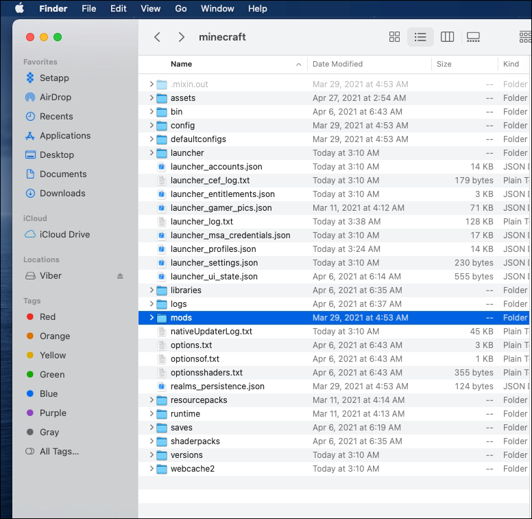 - Copy or move the “Controllable” file to your Minecraft “mods” folder. To find it, type “~/.minecraft” into the “search box” and open or create the “mods” folder.