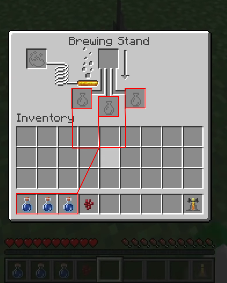 You can now go back to your Brewing Stand. Have all your ingredients in the inventory. You don’t have to run around and retrieve any missing items if everything is on hand.