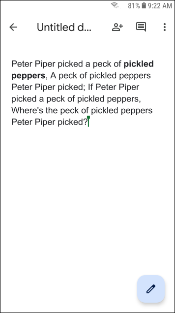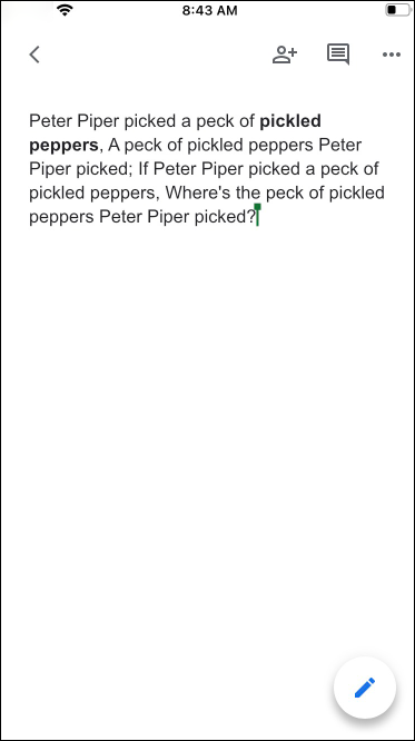 - Tap the “+” sign in the top toolbar. If you can’t see the editing option, scroll up in your document, and it will appear.