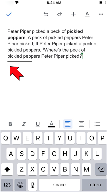 - Tap the “pencil icon” and place your cursor where your footnote will be.