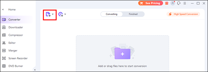 - You can add videos directly from your computer by clicking the “Add Files” icon on the top left side. It has a “+” sign. Next to this button, there’s a “drag and drop” icon and a “+” sign. Use it to load videos from your Android, iPad, or iPhone.