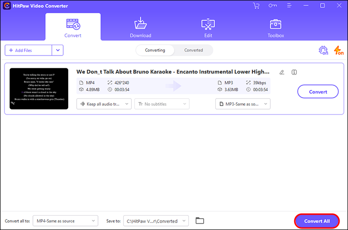 - Start the conversion process by clicking “Convert All” and wait for the app to produce a list of mp3 files.