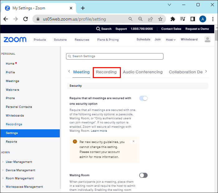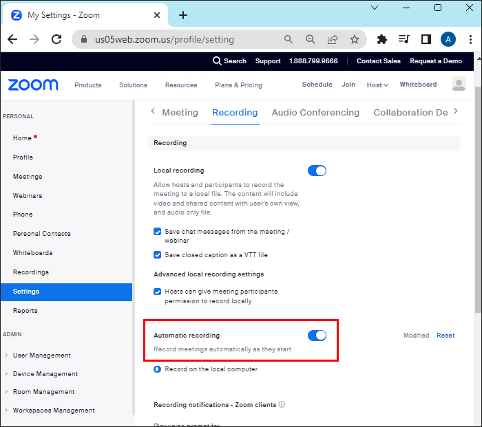How to disable automatic recording on Zoom