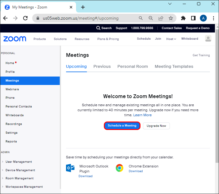 - Select “Meeting” under the “Upcoming” section. You can also click “Schedule a Meeting.”