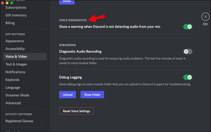 - Navigate to “Voice & Video” and then “Voice Diagnostics.”