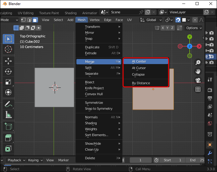 - In the menu, click on Merge (press the “M” key, alternatively.)