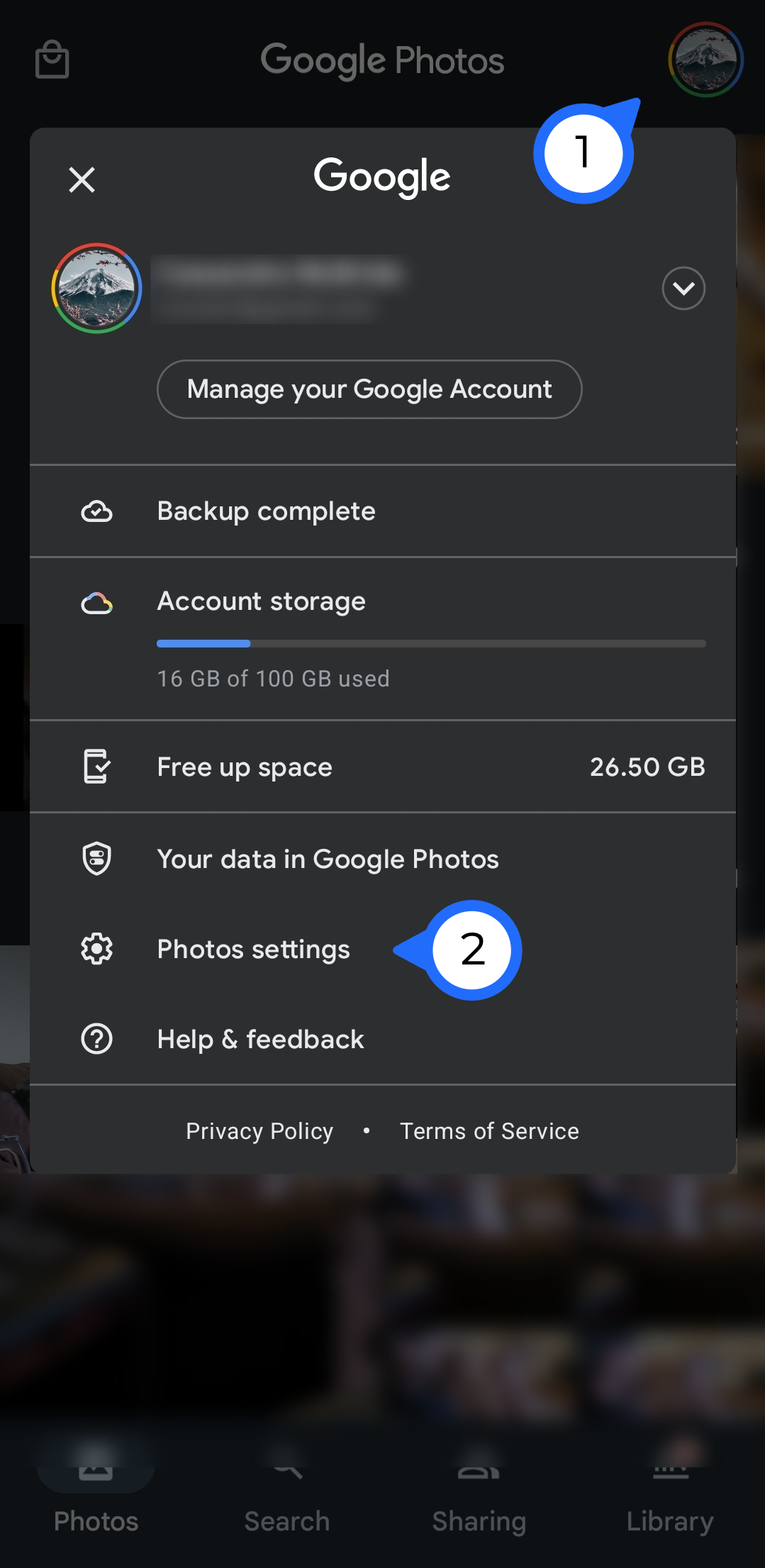 - Open Google Photos and tap on your profile icon in the upper right corner.