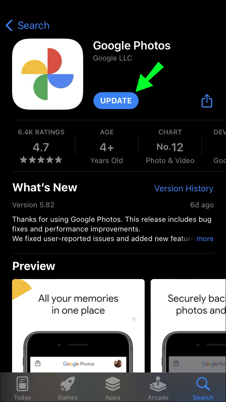 If you’re using an outdated version of Google Photos, you may not be able to back up your files. Here’s how to update your app using an iPhone: