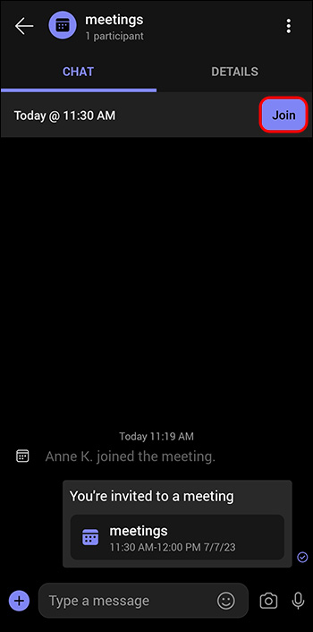 You can also join channel-specific meetings after they start. The meeting will appear at the top of the chat list: