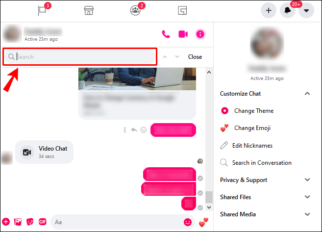 If you want to search for a specific message within a conversation on Facebook Messenger, do the following:
