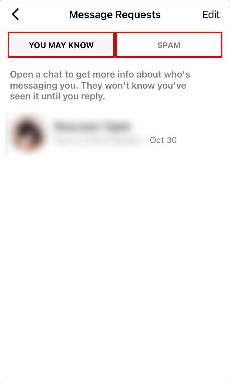 To search for contacts in your message requests, click on the search bar on the list of conversations on the left side of your screen.