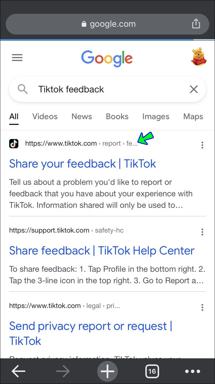 - Enter a Google search for TikTok feedback, then tap the correct result.